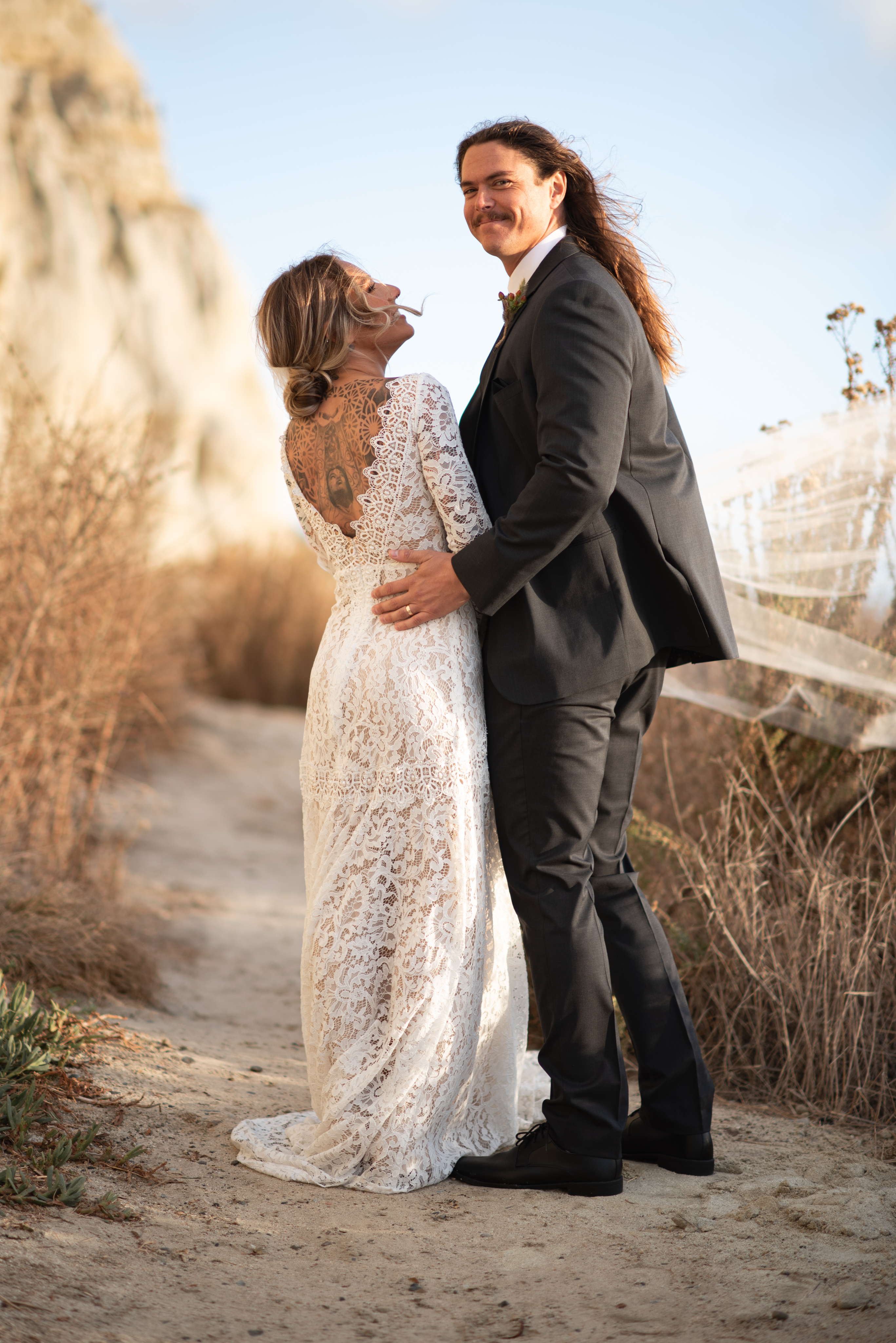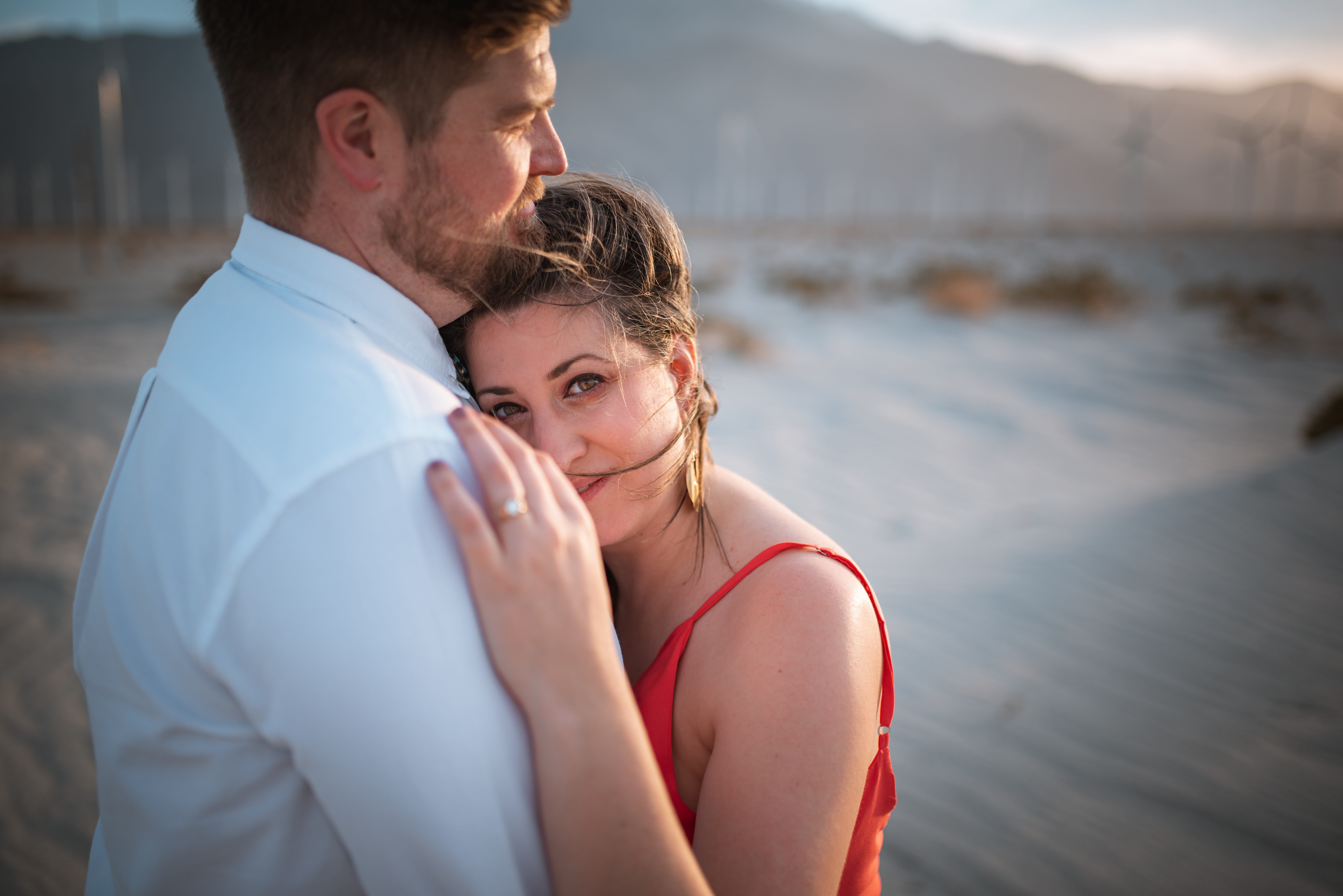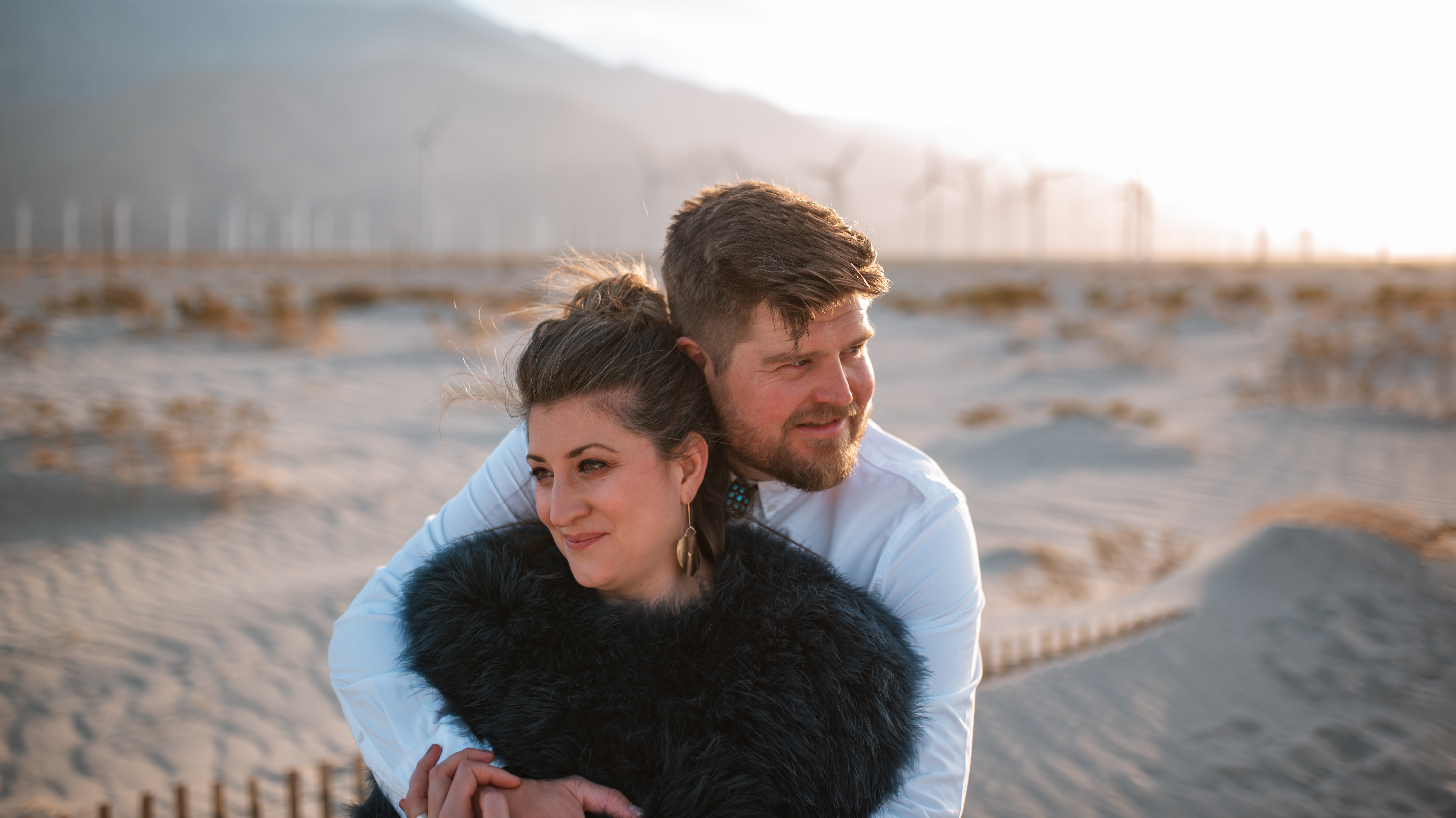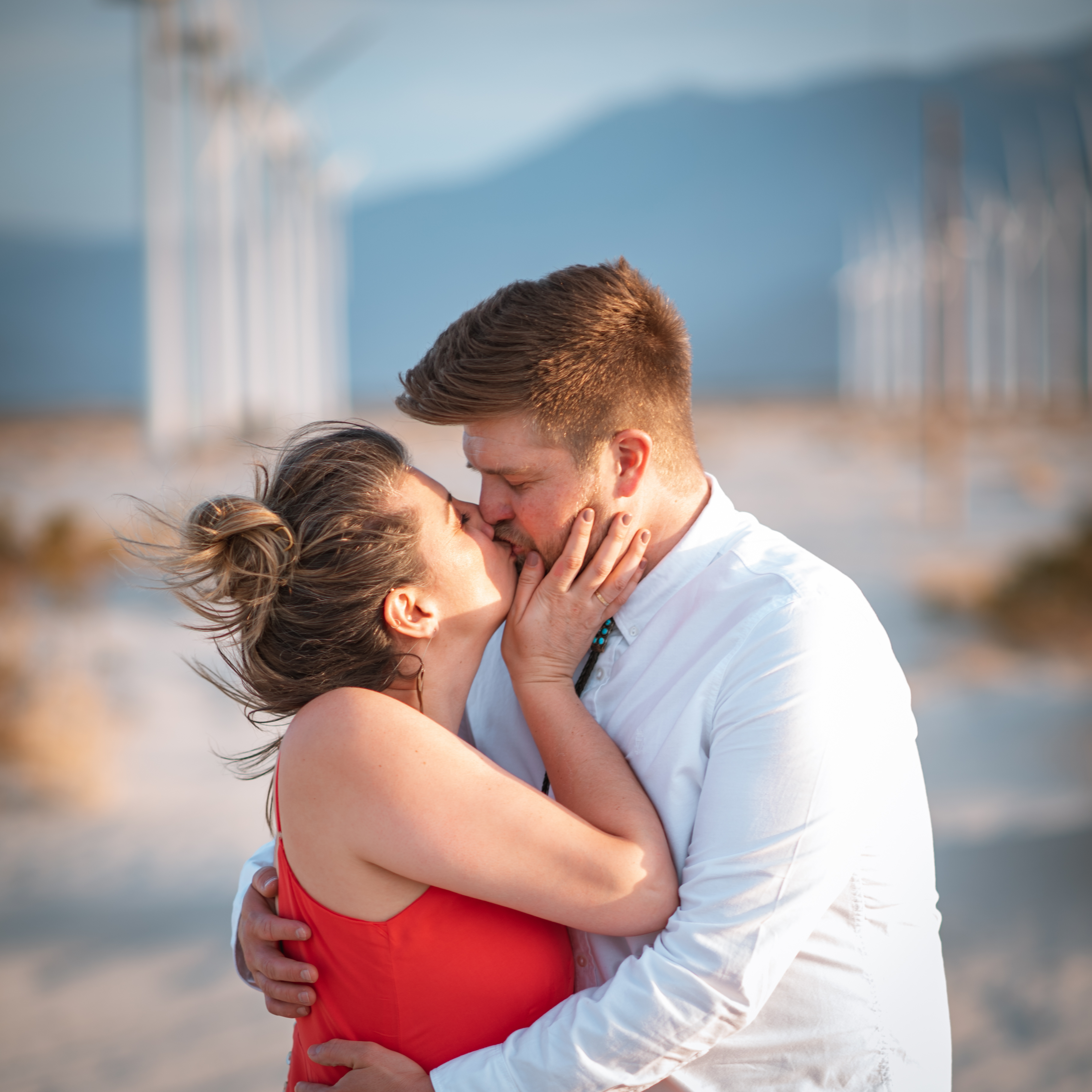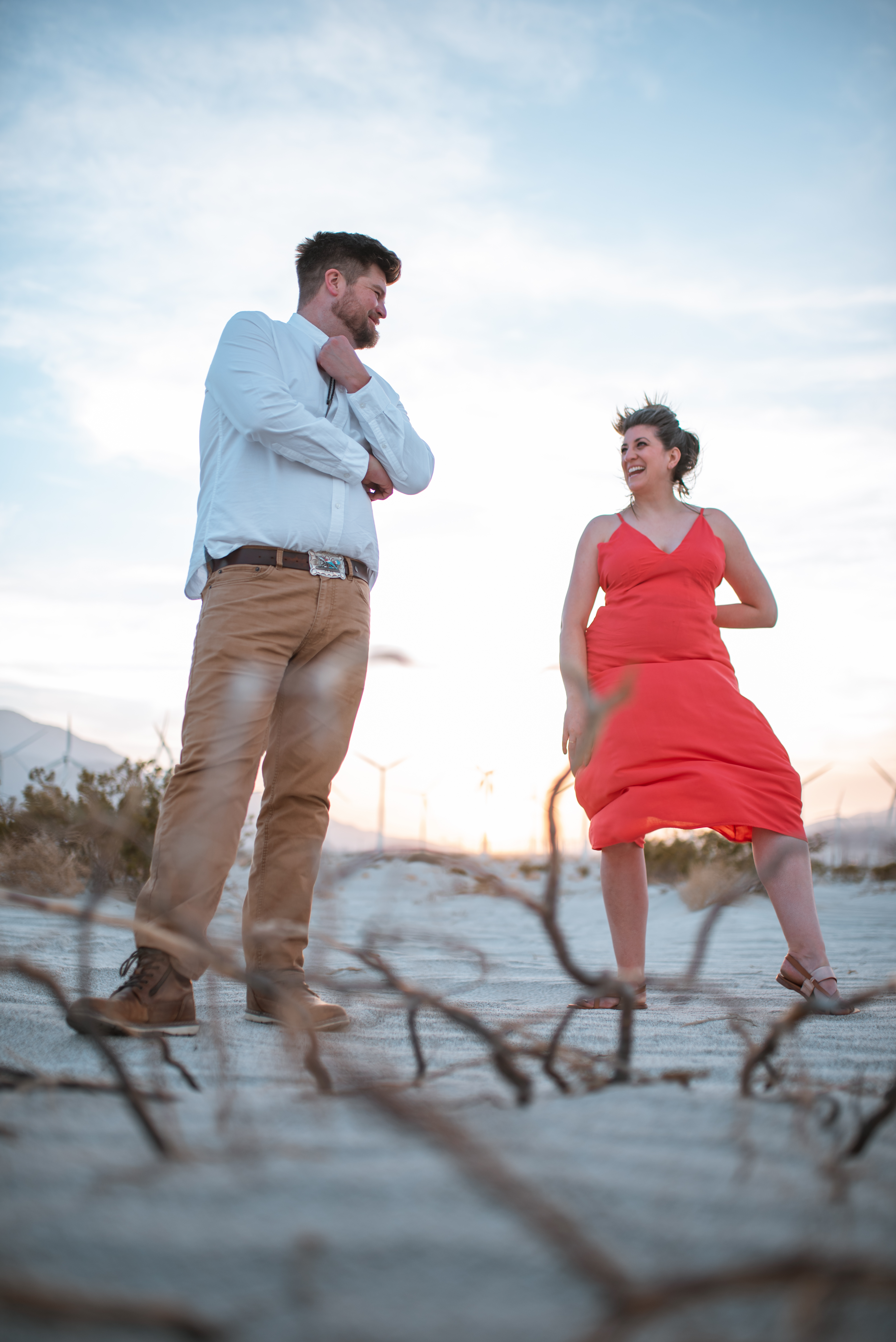 After some serious Instagram research and “driving” up and down roads in Google Earth street view, I knew where I wanted to shoot in Palm Springs in theory, but still wasn’t quite sure EXACTLY where it was. I mean those windmills cover a gigantic area. That one spot could be anywhere! But once I saw it in a couple photos online, I knew that’s where we needed to go. The sand had to be the right sand! There are tons of photos at the windmills in Palm Springs but only a few are in this area that’s not just rocks and bushes, aka Typical Southern California desert. No, no, no, I needed the flowy soft sand with the little fence! But where the hell is it!? Well we drove out early with the plan to do some recon. Alex was looking at the map and she had an idea. It was opposite of where I was told to go from various websites but that didn’t pan out in street view earlier so what the hell. We exit the freeway and after a few turns off in the distance I spot it! The little fence and the flowy sand! And it was perfect! (Don’t ask where, I’ll never tell)