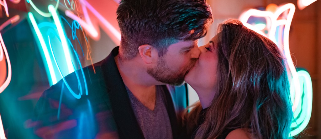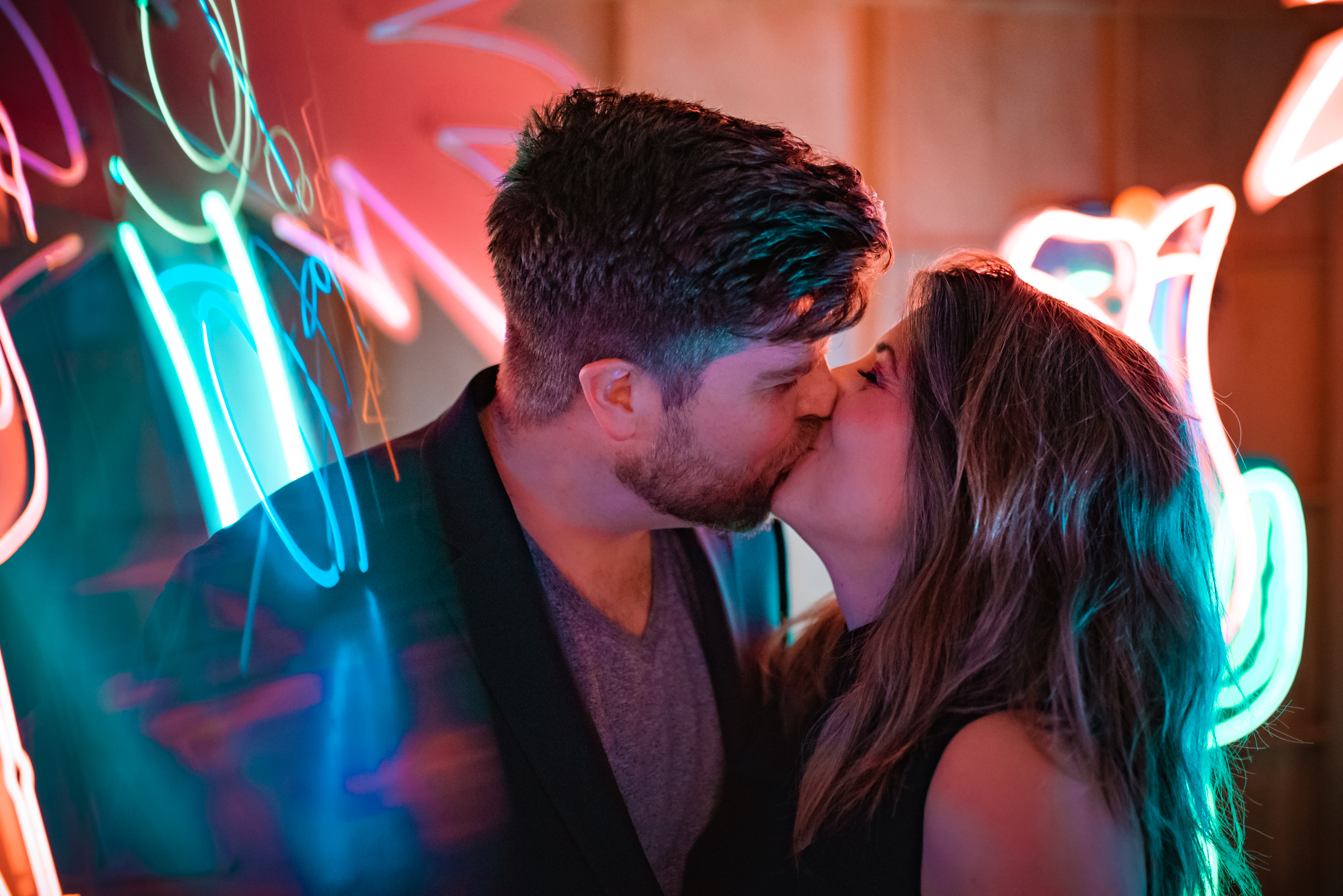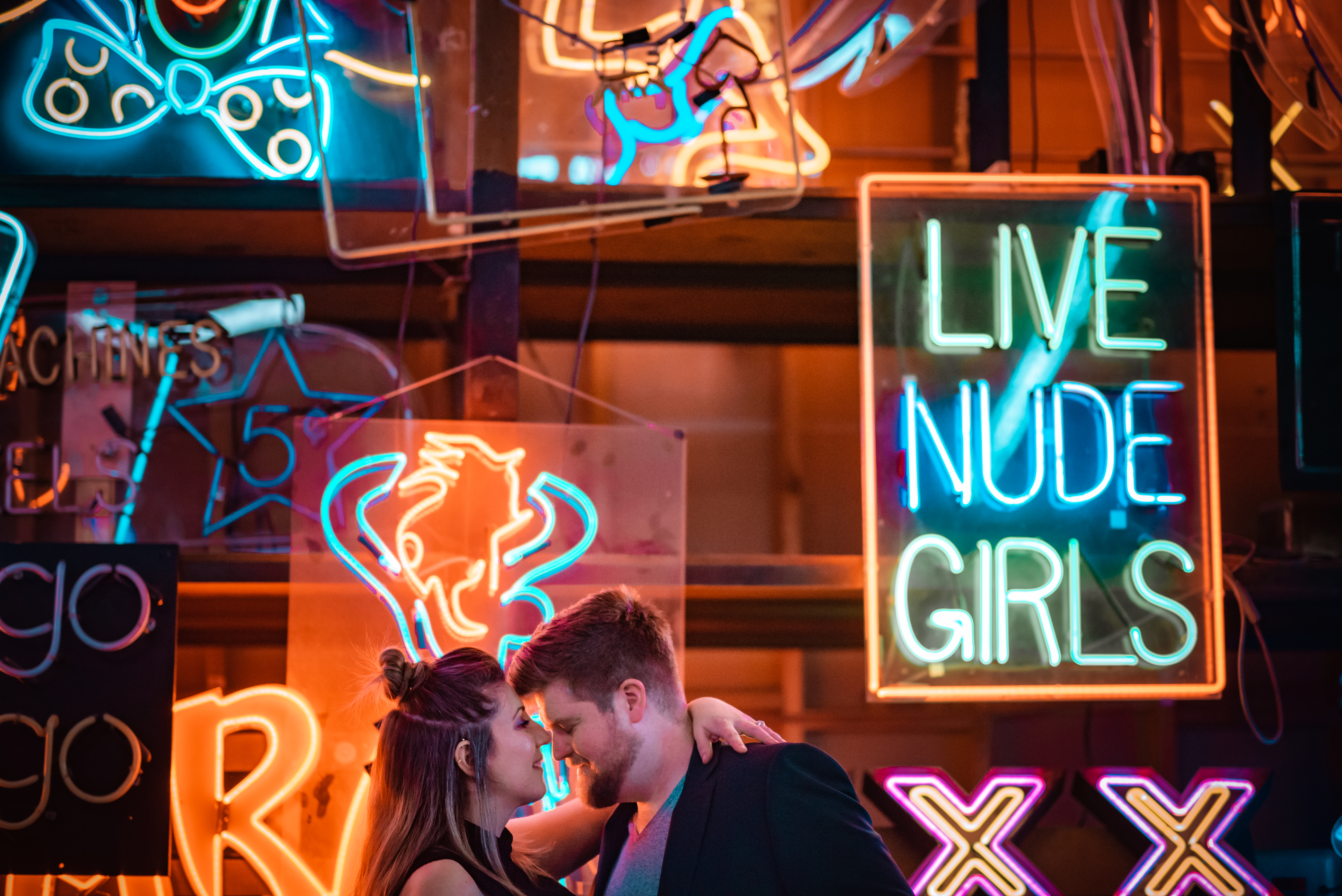 They say it’s not what you know but who you know. So true in this situation. I never would have been able to shoot at such an awesome location if the man of the hour didn’t have a very talented aunt with a very cool neon studio in LA: Nights of Neon (as seen on Huell Howser’s California’s Gold). I can attest it really is California’s Gold. When I was told we could shoot in his aunt’s neon shop, I expected a small corner shop in the city with a bunch or “open” signs and zero room to have much of an engagement shoot. I was so wrong. This place was amazing! Multiple warehouses with tons of space and just oozing style and options. The only bad part was the complete lack of sleep I got the night prior to the shoot. Thank you Jon, my one-year old who wakes up all night begging mom for “boobie,” Dad still loves you. So needless to say it was a low energy shoot and my creative juices were frustratingly left somewhere on my pillow at home. Thankful for understanding friends. I could have spent an entire day shooting here. AMAZING.